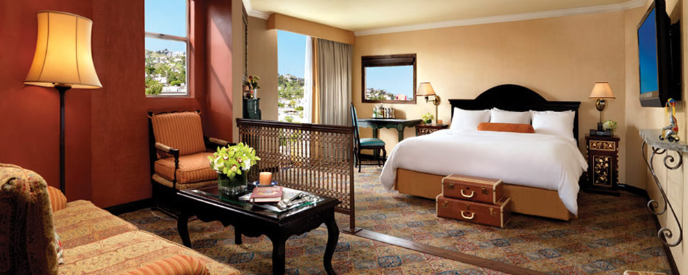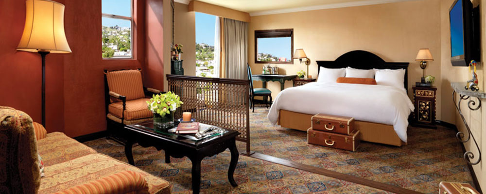 Our Executive Suite is a gracious guest room complete with a King Size bed and a separate sitting area with a Queen sized pullout sofa – for your equally glamorous, though decidedly Bohemian, friends of course. Many feature views of the city or the Hollywood Hills. Most include kitchenettes and private balconies. Each Suite features hand crafted Venetian plaster walls and original art, which are signature features of our West Hollywood Hotel.